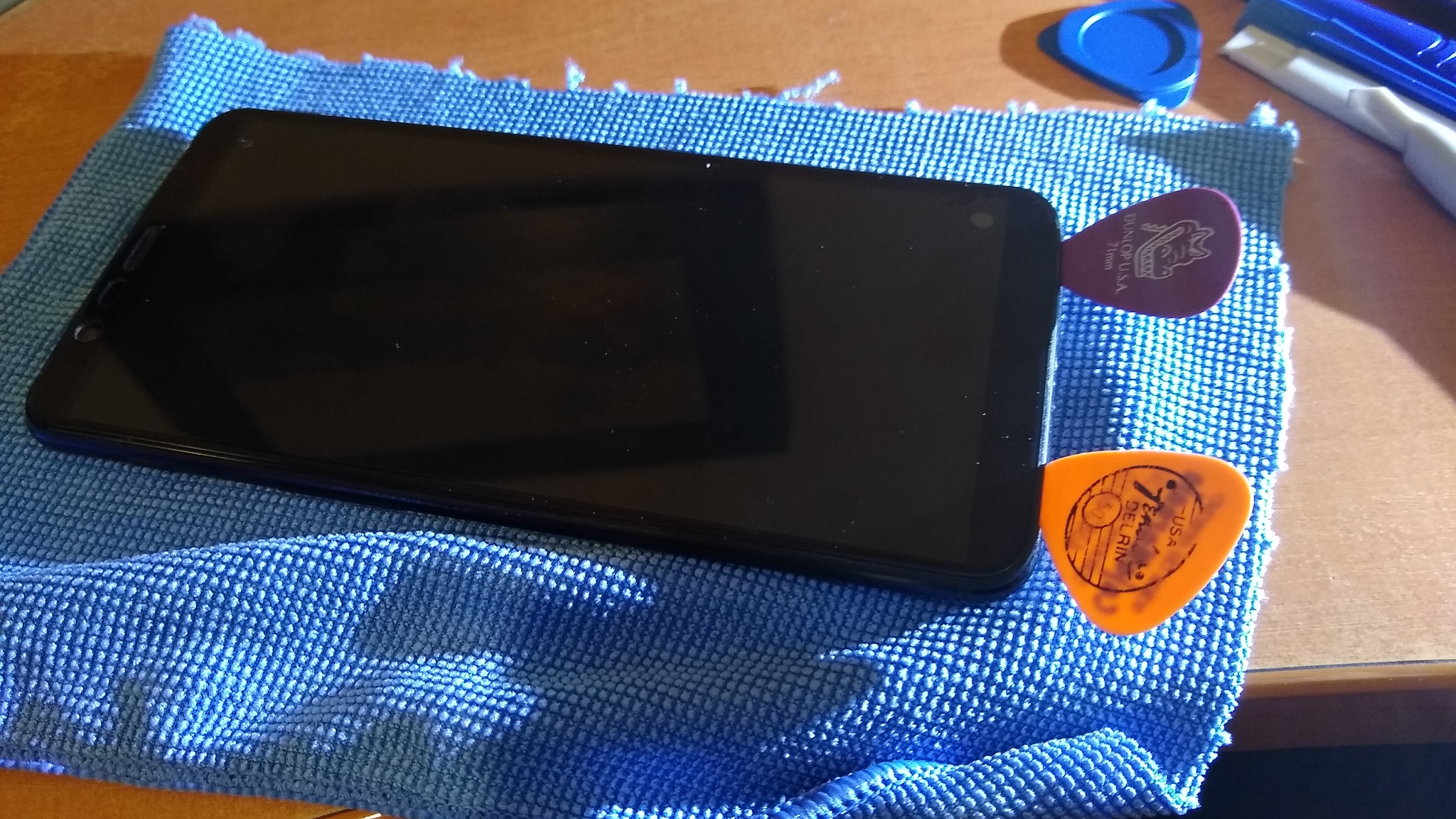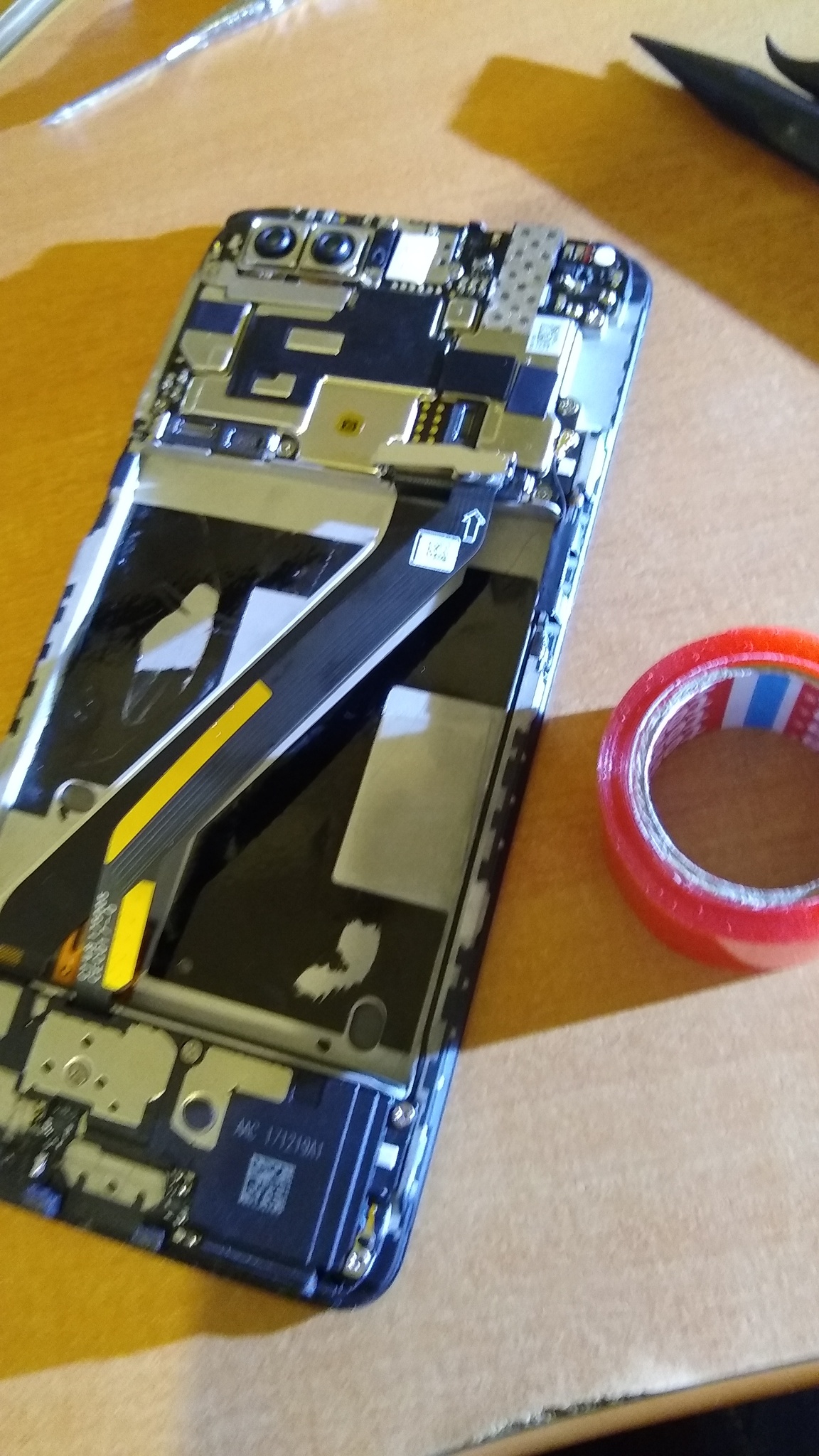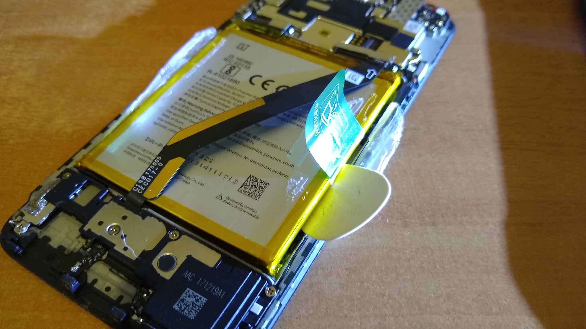 14. Andaba bien pero hubo que volver a desarmar. La cinta doble faz empujaba la batería y la pantalla se combaba apenas apenas pero era percibible.