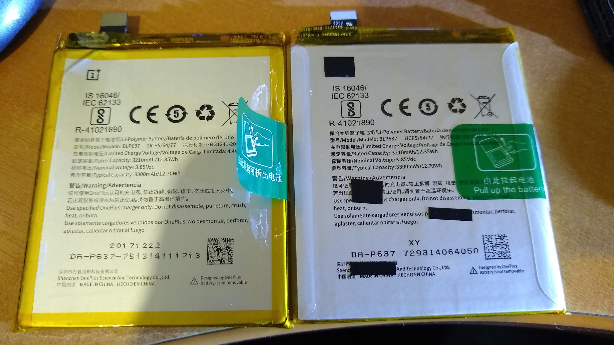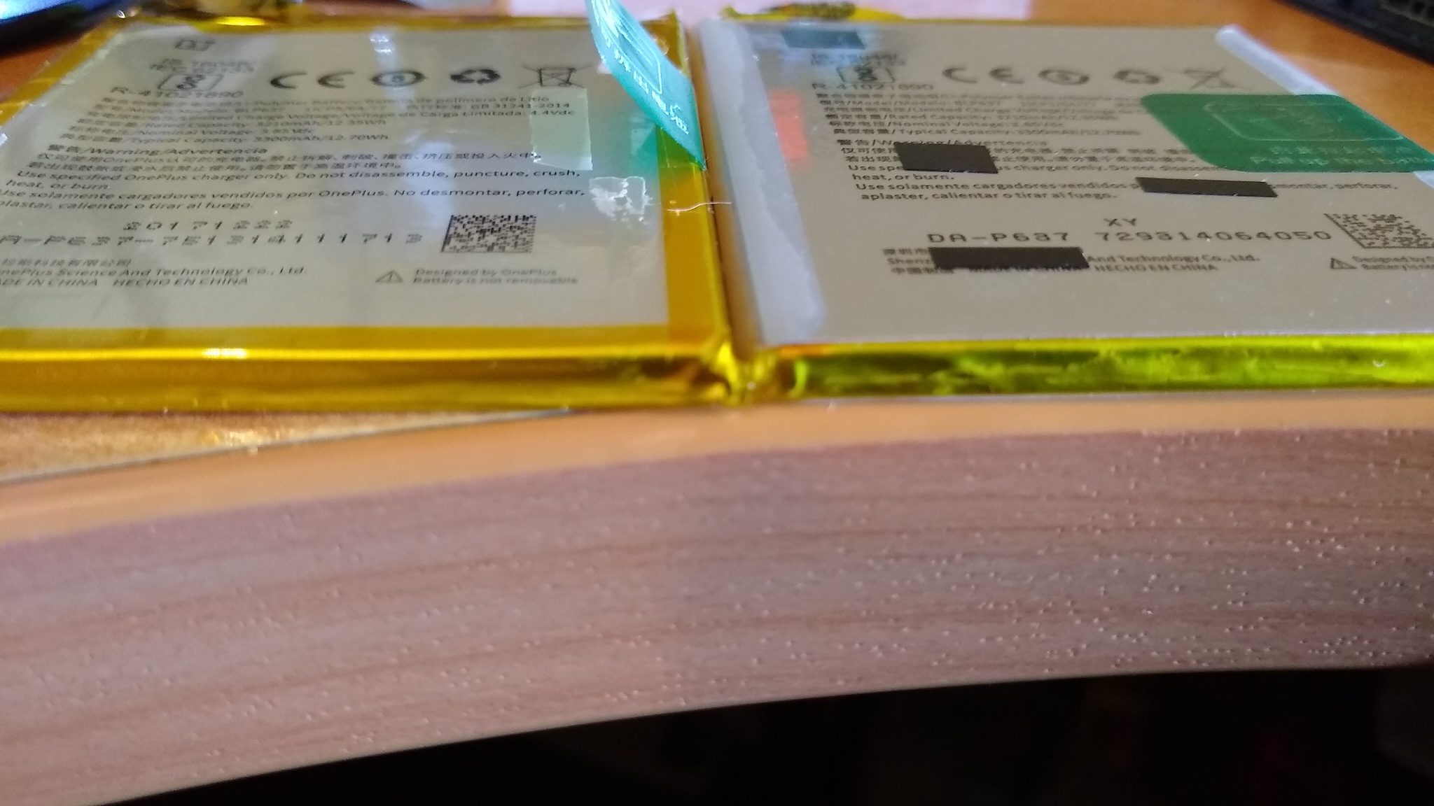 9. Las dos baterías lado a lado. Me vendieron una refurbished, quizás sacada de un celular roto por otro motivo de china. No hubo drama, dos meses después mi hermano me compró una batería iFixit por Amazon y repetí la reparación. Hoy día tiene la que es marca iFixit original en vez de esta.