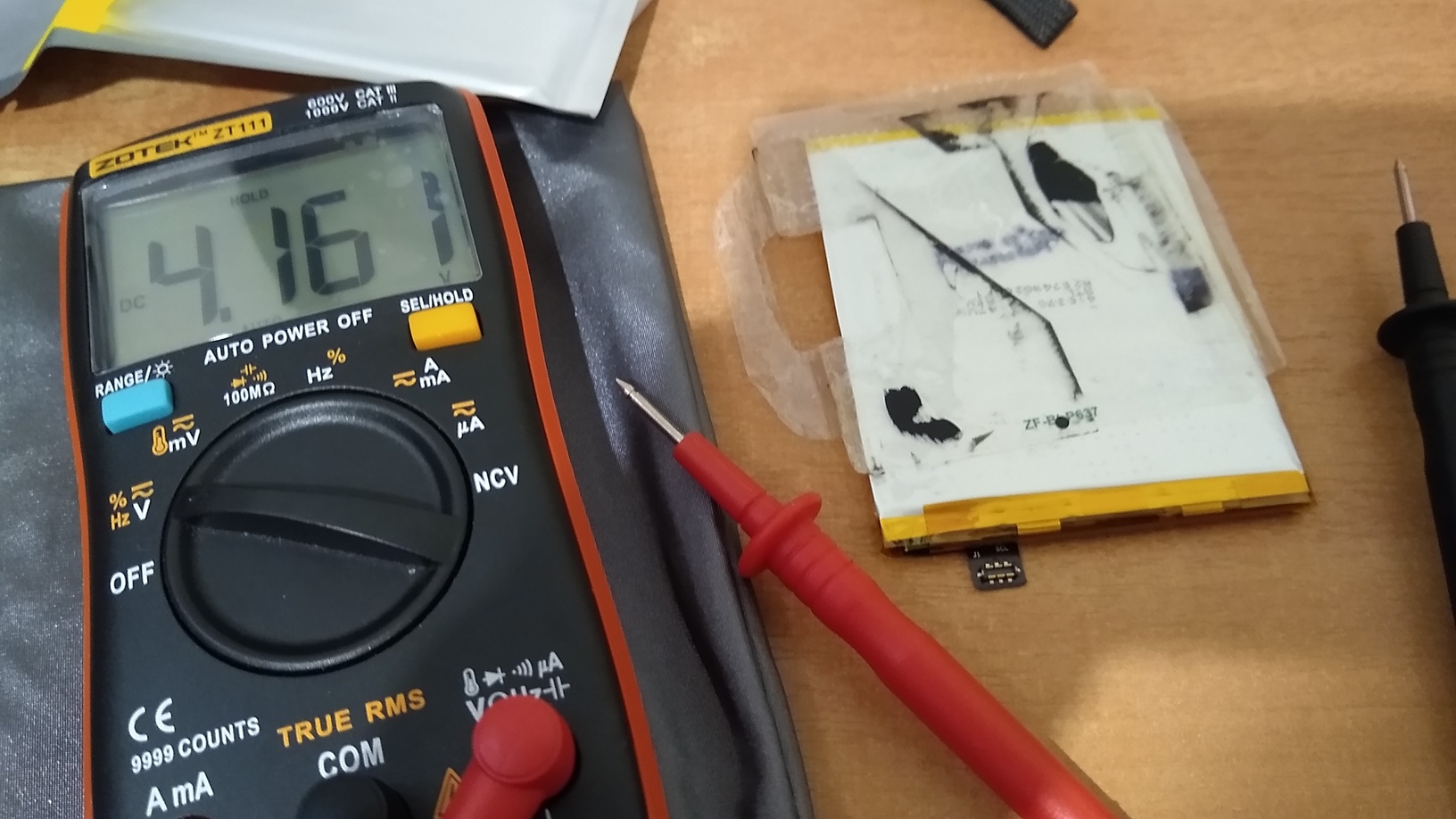12. La batería vieja midiendo 4.161Volts
