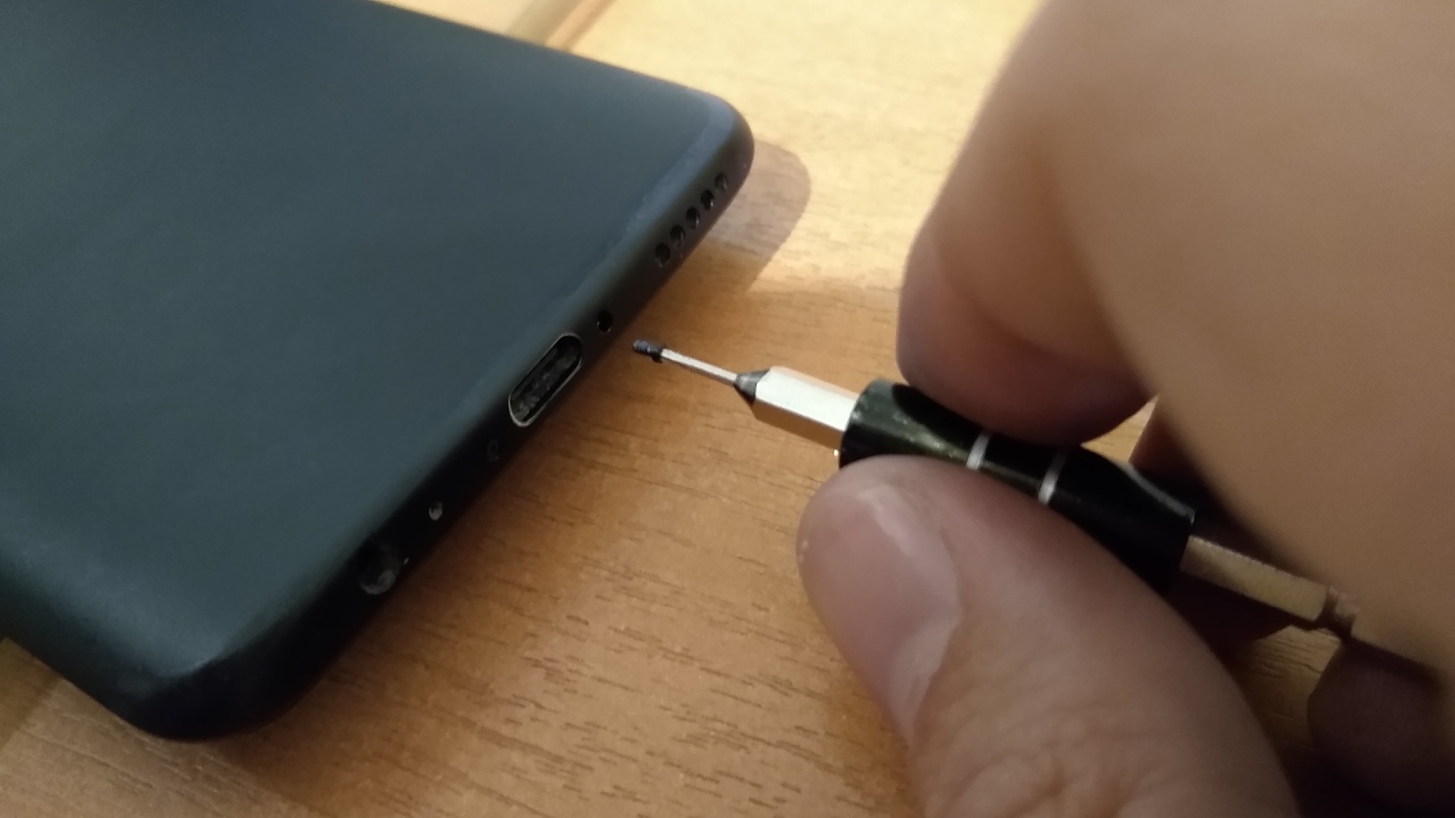 2. El celular solo tiene dos tornillos Torx, los tiene alrededor del port de carga USB