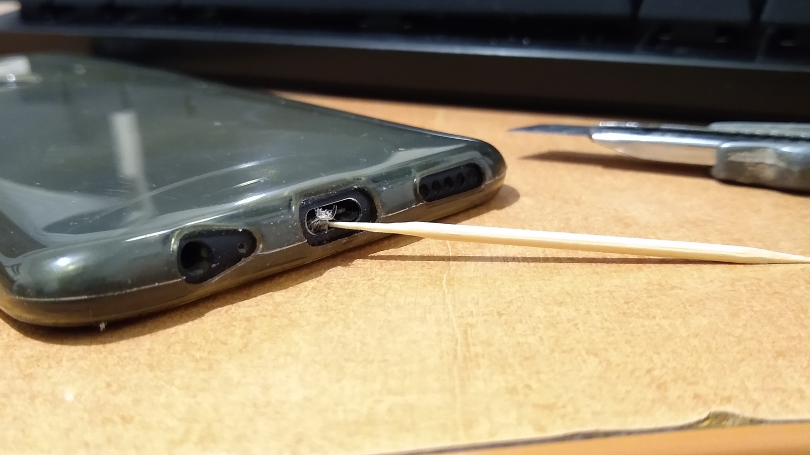El mismo escarbadientes se puede usar para el port de audio 3.5mm con similares resultados. No sabés la pelusa de bolsillo que hay! Y los auriculares dejan de hacer buen contacto y el enchufe no traba cuando hay pelusa, y se desenchufa solo.